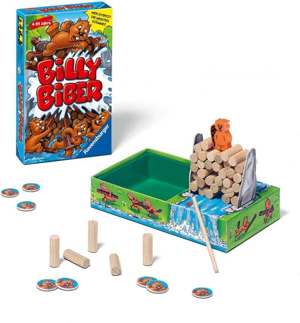 Billy, pass auf! Immer wieder schieben die frechen Biberkinder Holzstämme aus dem Stapel.Manchmal gelingt es-doch wenn Billy es bemerkt,sind Meckerchips fällig.