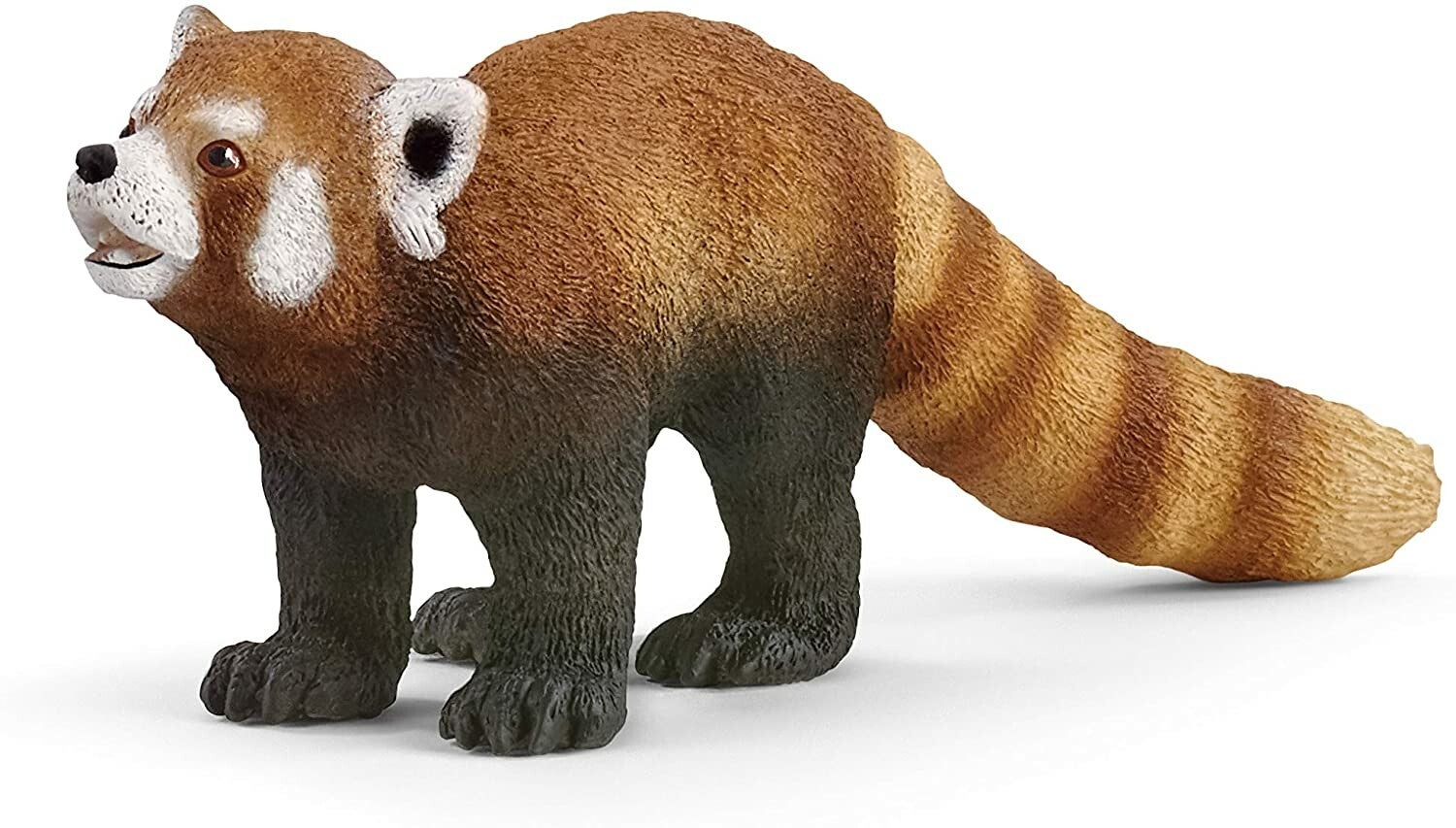 Der Rote Panda von Schleich® Wild Life hat einen geringelten Schwanz, rotbraunes Fell und kräftige Pfoten mit scharfen Krallen.