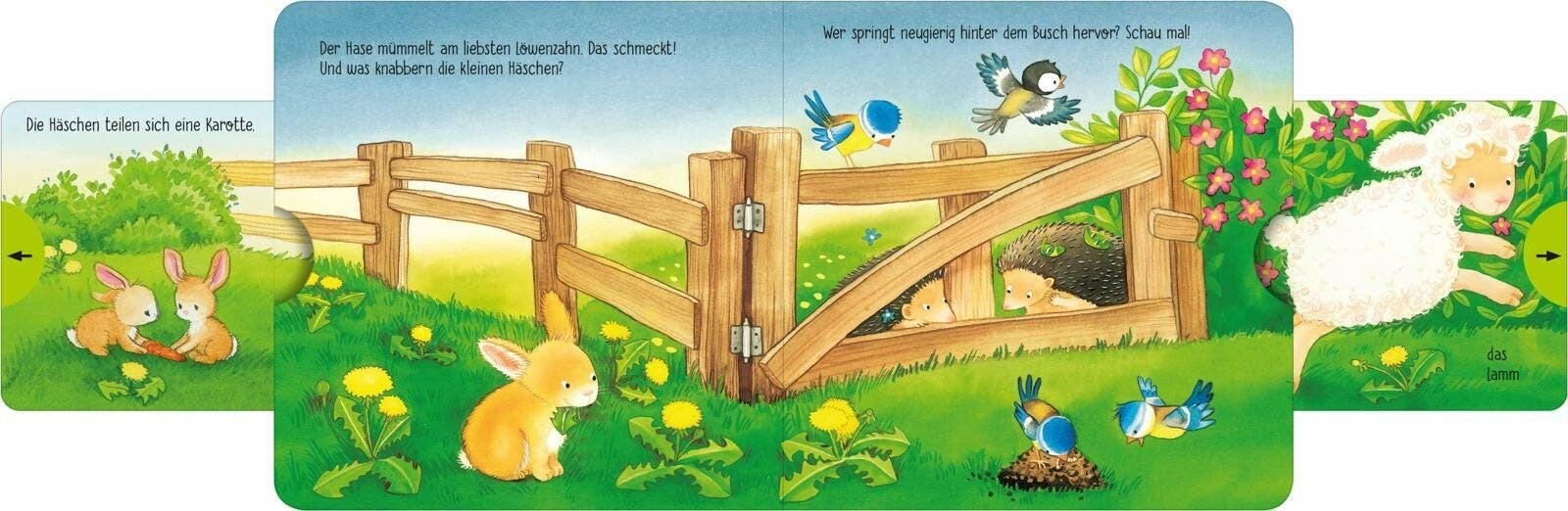 Ob Lämmchen, Hund oder Marienkäfer – auf fünf Doppelseiten lernen die Kleinsten spielerisch die ersten Tiere kennen. Die liebevollen Illustrationen laden zum gemeinsamen Anschauen ein und auf zahlreichen Schiebern gibt es noch mehr zu entdecken.