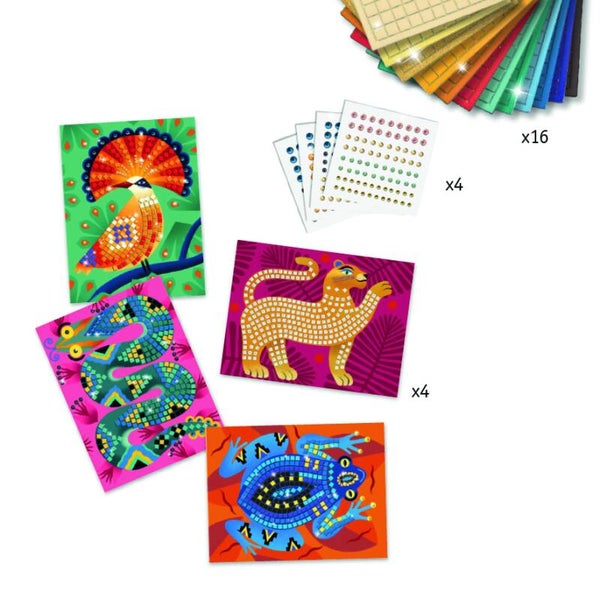 Hochwertige Mosaike aus selbstklebenden Metallic-Schaumstoff-quadraten und Glitzersteinen ,die wie Sticker verwendet werden.